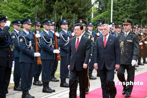 当地时间6月20日,克罗地亚总统梅西奇在总统府举行仪式,热烈欢迎中国国家主席胡锦涛到访。中新社发 齐彬 摄