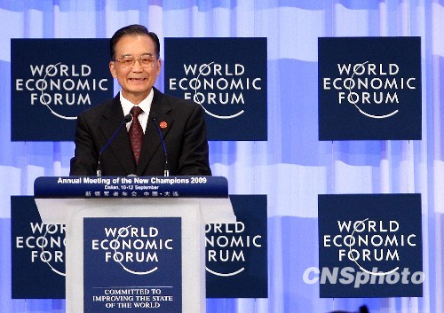 9月10日,中国总理温家宝在大连出席世界经济论坛第三届领军者年会(夏季达沃斯)开幕式,并发表特别致辞。中新社发 杜洋 摄