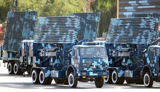 10月1日,首都各界庆祝中华人民共和国成立60周年大会在北京天安门广场隆重举行。这是国庆阅兵分列式中的机动雷达方队正在通过天安门广场。陈晓伟 摄