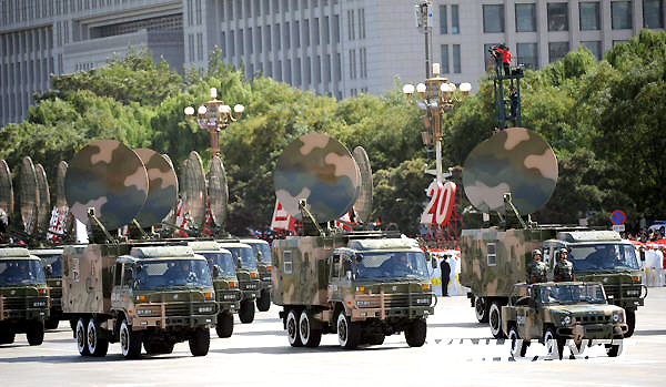 10月1日,首都各界庆祝中华人民共和国成立60周年大会在北京举行。这是通信兵方队接受检阅。李尕 摄
