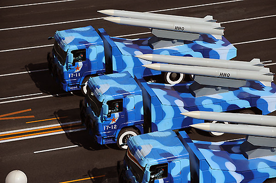 10月1日,首都各界庆祝中华人民共和国成立60周年大会在北京天安门广场隆重举行。这是海军航空导弹方队在长安街上行进。 李勇 摄