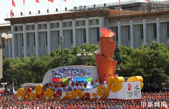 10月1日,首都各界庆祝中华人民共和国成立60周年大会在北京举行。图为“北京奥运”方阵。 中新网记者摄