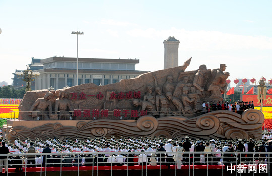 10月1日,首都各界庆祝中华人民共和国成立60周年大会在北京举行。图为“众志成城”方阵。 中新网记者摄