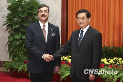10月13日,中国国家主席胡锦涛在北京人民大会堂会见巴基斯坦总理吉拉尼。中新社发 盛佳鹏 摄