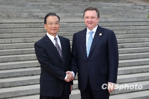 10月15日,中国国务院总理温家宝在北京人民大会堂东门外广场举行仪式,欢迎吉尔吉斯斯坦总理丘季诺夫。中新社发 盛佳鹏 摄