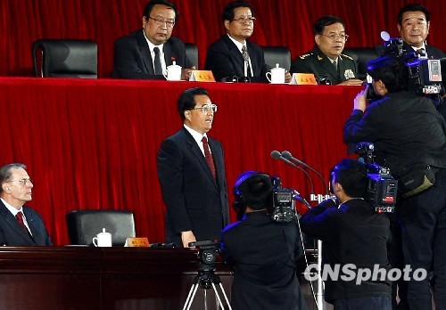 10月16日晚,第十一届全国运动会开幕式在山东济南举行。图为中共中央总书记、国家主席胡锦涛宣布第十一届全运会开幕。中新社发 刘震 摄