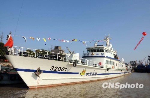 12月16日,江苏海域最大的执法巡逻舰――海警32001舰在太仓浏河港正式服役。这是国内首批全国产化海警执法舰艇之一,也是江苏吨位最大、航速最快、设备最先进的海上执法舰艇。它的服役,将极大提高江苏海警在恶劣气象海况条件下的执法执勤,打击海上走私、偷渡、盗抢等违法犯罪活动的能力,有效提升处置海上群体性突发事件和执行海上安全保卫任务水平,同时可进一步充实江苏“海上110”综合实力,为履行“维权、执法、服务”三位一体的职能打下扎实的基础。中新社发 黄金衔 摄