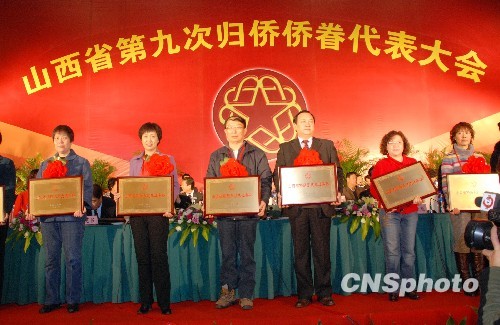 12月19日上午,山西省第九次归侨侨眷代表大会在太原开幕。来自全省侨界219名代表欢聚一堂,共商山西侨联事业发展大计。在开幕式上,山西省委书记张宝顺、省长王君、山西省政协主席薛延忠和中国侨联副主席王永乐对山西省外事侨务办公室、山西省侨联联合表彰的49名全省归侨侨眷先进个人,山西省侨联表彰的10个全省侨联系统先进集体和25名全省侨联系统先进个人颁发奖状。中新社发 张雷杰 摄