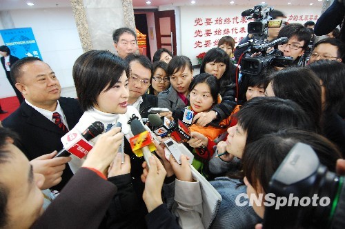 1月28日,广东省政协十届三次会议开幕,来自香港的政协委员吴小莉被媒体记者层层包围。中新社发 柯小军 摄