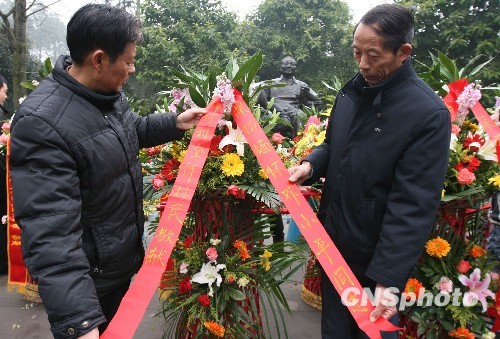 2月19日是中国改革开放的总设计师邓小平逝世13周年纪念日。当天上午,四川省广安市广安区协兴镇牌坊村村民在邓小平铜像广场敬献鲜花寄托哀思。 据“邓小平故里”管理局局长马福介绍,近一段时间,每天都有近万名游人到邓小平故里参观,表达对邓小平的无限缅怀之情。中新社发 廖小兵 摄