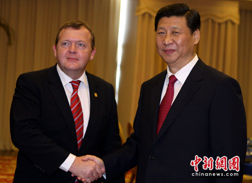 4月10日中午,中国国家副主席习近平在海南会见前来参加“博鳌亚洲论坛2010年年会”的丹麦首相拉斯姆森。中新社发 任晨鸣 摄