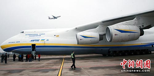 4月11日,安-225大型运输机降落石家庄机场。当日,载有145吨货物的安-225大型运输机由德国汉堡飞抵河北省石家庄机场。由乌克兰制造的安-225属6发涡扇重型运输机,最大载重量250吨,为目前世界上最大的运输机,被誉为“超级空中巨无霸”。中新社发 翟羽佳 摄