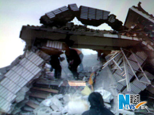 4月14日用手机拍摄的地震现场照片。当日早上7时49分,青海省玉树藏族自治州玉树县(北纬33.1度,东经96.7度)发生7.1级地震。张红栓 摄