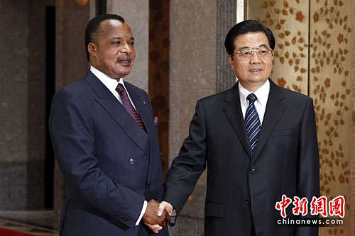 图:胡锦涛会见刚果(布)总统萨苏