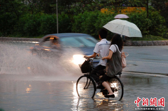 5月9日下午,阵雨过后广州市内多处路面积水,影响交通。广州市气象局悬挂暴雨黄色预警信号,预计将有中到强雷雨,提醒市民注意安全。中新社发 柯小军 摄