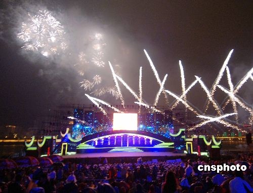 5月17日晚,中国福州第十一届海峡两岸经贸交易会开幕式大型文艺焰火晚会在福州闽江公园望龙园江滨大舞台举行。整台晚会突出“海峡缘·故乡情”主题,将独具民俗风情的歌舞表演和璀璨夺目的焰火完美地融合在一起,来自海内外嘉宾及观众3000多人冒雨观看了该晚会。中新社发 刘可耕 摄