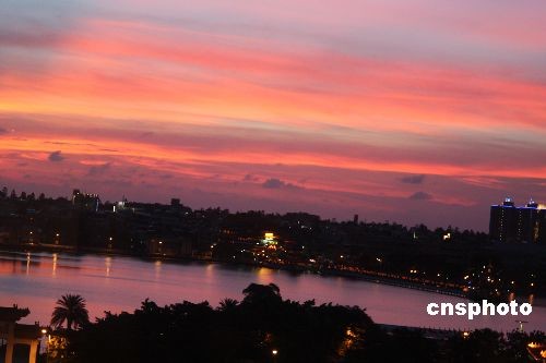 7月23日傍晚,天气炎热的高雄市出现“火烧云”奇观,一道长长的“红霞”展延而富于变化,但稍纵即逝。中新社发 董会峰 摄