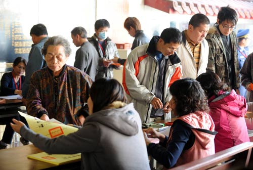 台湾2009年县市长、县市议员、乡镇市长“三合一”选举5日进行投票,一早天气晴朗,民众投票踊跃,过程大致平和。(“中央社”图)