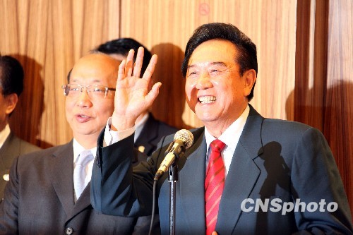 海协会会长陈云林十一月二十一下午在台中市长胡志强(图左)及海基会董事长江丙坤的陪同下,参观台中市政建设。陈云林在参观结束后盛赞台中的发展,并表示愿意向大陆推介台中,作台中市的代言人。中新社发 曾嘉 摄