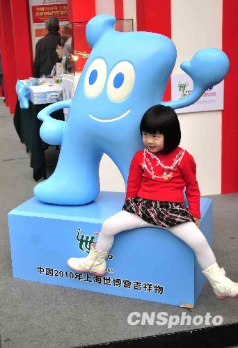 十二月二十五日,上海世博会吉祥物“海宝” 在香港工展会内展出,受到小朋友欢迎。上海世博门票香港销售代理中旅社表示,世博会门票销情理想,至今已售出三万张。中新社发 谭达明 摄