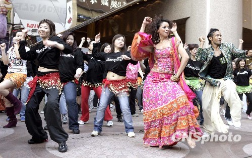 红遍国际的宝莱坞音乐剧《舞动宝莱坞》将于2月2日至14日首次在香港公演。《舞动宝莱坞》两位男女主角已抵达香港,并出席`1月31日于时代广场露天广场举行的大型跳舞活动,现场带领100多名本地舞蹈学生齐跳《宝莱坞舞》,创造了全港最大型户外跳《宝莱坞舞》的纪录。中新社发 张勤 摄