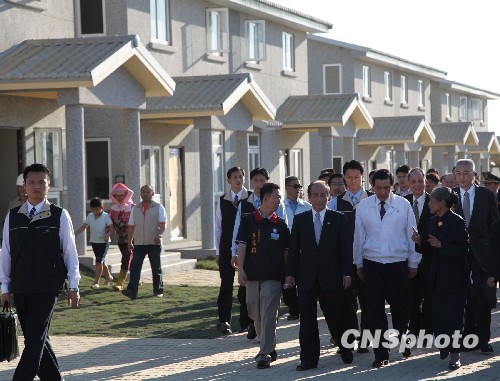 2月11日下午,台湾领导人马英九(右三)来到高雄县杉林乡大爱园区,出席台湾风灾灾民迁入新居典礼。由慈济组织建设的大爱园区60公顷,去年11月15日动工,可兴建1500户永久屋,安置灾民。中新社发 耿军 摄