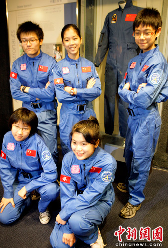 5月8日,“少年太空人体验营”新闻简报会在香港太空馆举行。由即日起至五月三十一日,“体验营”接受全港中学提名学生参加。“体验营”于去年首度举办,此次举办第二届体验营活动,让香港学生认识中国在航天科技上取得的重大成就、培养学生学习了解太空科学和航天科技的兴趣,以及体验中国太空人的训练过程。图为去年首度“少年太空人体验营”的部分学员在太空馆展览厅拍照。中新社发 张勤 摄