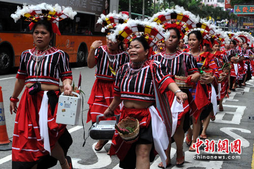 6月13日,二千多名在港菲籍人士在香港修顿球场集会,并沿轩尼诗道载歌载舞游行至维多利亚公园,庆祝菲律宾独立112周年。中新社发 郑祚声 摄