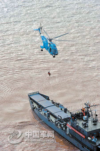 12月18日,一场海上联合搜救演练在东南某海域举行。由直升机和舰艇组成的空中、海上应急救护队完成了紧急出动、海空搜救、机上救护、直升机运送伤员等演练课目。