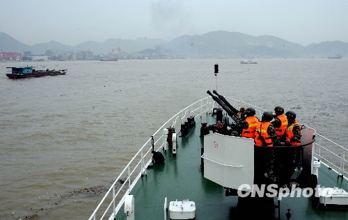 4月28日,一场以上海世博会海上安保工作为背景的海上反恐处突实战演练在福州马尾闽江口海域拉开序幕。福建福州闽江口上连苏杭、下接闽粤,是海上重要交通枢纽,是上海世博会海上安保工作的“桥头堡”。中新社发 刘可耕 摄