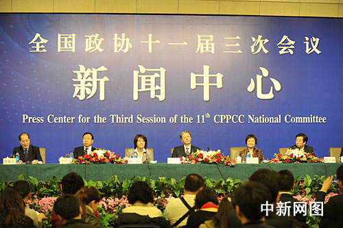 3月10日,全国政协十一届三次会议集体采访在两会新闻中心(梅地亚宾馆)多功能厅举行,山西省教育厅厅长李东福,华东师范大学党委书记张济顺,北京师范大学教育学院学前教育系主任刘焱,北京师范大学校长钟秉林,北京大学常务副校长、医学部常务副主任柯杨,宁夏回族自治区工商联副主席、银川大学校长孙珩超等政协委员就推进教育改革话题接受记者采访。中新网记者 杨威 摄