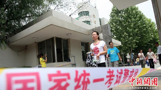 6月7日,河南郑州首考考点,考生信心百倍的走出考场。中新社发 王中举 摄