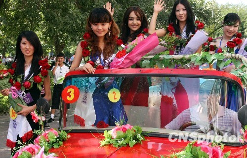 7月28日,第六届哈密瓜节及2009-2010国际旅游小姐中国新疆赛区总决赛在新疆哈密如期开幕。图为国际旅游小姐大赛新疆赛区总决赛的参赛佳丽展示风采。中新社发 钱兴强 摄