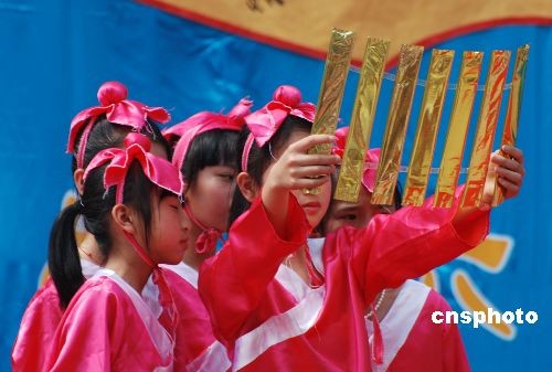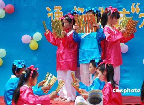6月1日,广西昭平开展“诵经典 庆六一”活动,弘扬中华民族传统文化,展示山村学生艺术风采。中新社发 喻湘泉 摄