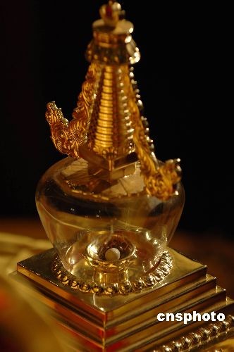6月8日,中国佛教界首次组团前往佛教创始人释迦牟尼的故乡——尼泊尔蓝毗尼迎请的舍利正式安放在湖南张家界天门山寺。该佛舍利如黄豆大小,呈现出象牙白的光泽,由尼泊尔蓝毗尼中华寺赠予,是中国目前仅有的五枚之一。中新社发 肖前辉 摄