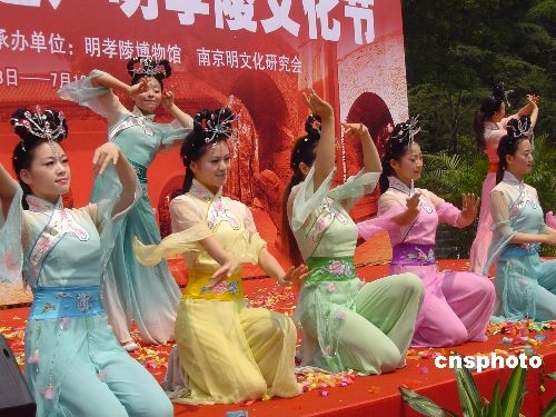 6月13日,是中国第4个文化遗产日。当天上午,为期1个月的“2009世界遗产明孝陵文化节”在南京明孝陵博物馆前广场开幕,以庆祝文化遗产日及明孝陵“申遗”成功6周年。图为开幕式上传统民族文化艺术表演。中新社发 王国安 摄