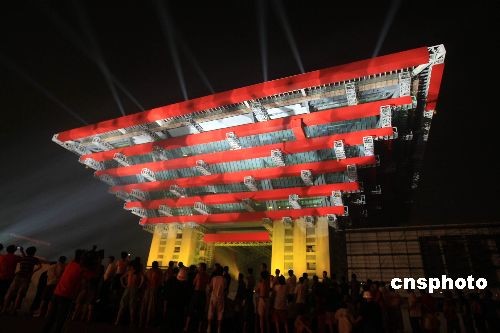 6月22日晚,素有“东方之冠”之称的上海世博会中国馆举行亮灯仪式,在黄浦江畔初绽美丽光芒。中国馆正式亮灯是世博会园区电力建设中一个重要里程碑,标志着世博各项供电工程已全面进入冲刺阶段。据悉,今日投运的中国馆三十五千伏变电站总容量为一点六万千伏安,投运后将直接为两万平方米的中国国家馆、三万平方米的中国地区馆以及三千平方米的港澳台馆提供安全、稳定的电力。中新社发 汤彦俊 摄