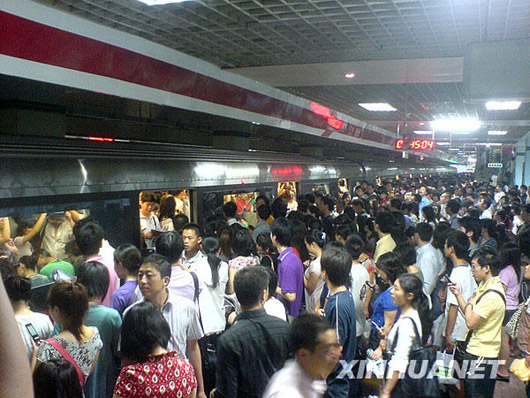 7月17日8时30分许,大量乘客滞留一线地铁四惠东站。当日8时25分左右,在北京地铁一号线南礼士路站有人跳轨自杀,当场死亡。造成地铁一号线和八通线全线停运。崔月平摄