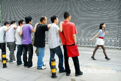 近日在北京某商业区,“搭讪”培训班的老师带领学员实地演练。一些学员表示参加课程是为了学习与女孩相处的经验,找到自己的满意的对象,也有人希望锻炼自己的心理素质以及与陌生人交流的能力。学员年龄主要集中在25至29岁之间,大部分已经工作,也有三分之一为在校学生,多为研究生以上学历,包括几个中科院博士。中新社发 赵依依 摄