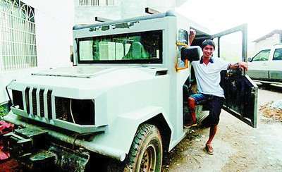 一说到“悍马”,人们马上会想到那拥有“越野之王”美誉的庞然大物,可浏阳文家市镇文华村28岁的花炮机械设计师杨伦伟,着迷于“悍马”的彪悍外形,突发奇想,与徒弟一起造出了一辆“山寨悍马”,惹得周围邻居连连称奇。
