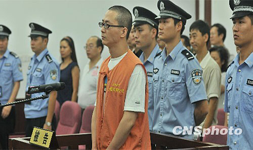 9月8日,孙伟铭被控犯以危险方法危害公共安全罪上诉一案,在四川省高级人民法院二审宣判,孙伟铭被改判为无期徒刑,剥夺政治权利终身。法庭认定,孙伟铭以危险方法危害公共安全罪罪名成立,但其有真诚悔过表现,终审判决无期徒刑。判决宣判后,孙伟铭当庭大哭。去年12月14日,孙伟铭无证醉驾一辆别克轿车,越过黄色双实线,先后撞向对面正常行驶的4辆轿车,造成4人死亡,1人重伤。图为孙伟铭听最终审判结果。中新社发 川高 摄