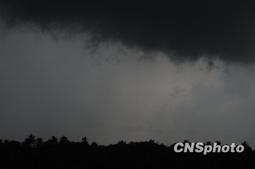 2009年9月13日,琼海市上空乌云压城。今年第15号热带风暴于当天凌晨生成,中心附近最大风力8级,目前正逐渐向广东西部近海靠近,强度逐渐增大。受其影响,当天下午,地处海南东部沿海的琼海市天气突然变脸下起阵阵大雨。中新社发 蒙钟德 摄