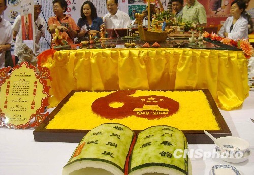 9月中旬,国庆题材烹饪作品亮相苏州美食节,吸引观众眼球。中新社发 王建康 摄