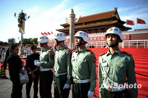 图:警备纠察北京天安门上岗执勤