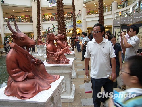 9月26日,为期一个月的“圆明园十二生肖兽首国宝”展在江苏无锡市保利广场进行。据了解,这次国宝展是圆明园花费4年时间,按古法再造的12生肖兽首和神像。中新社发 盛国平 摄