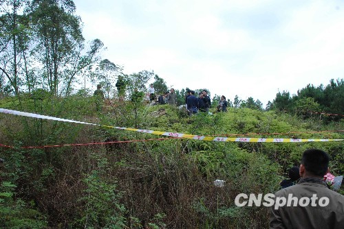 10月14日上午,一载有7人的热气球在广西阳朔境内升空后失控,行至荔浦县马岭镇德安村山面屯下降时不慎发生倾斜,导致热气球着火,造成4名荷兰籍游客坠落死亡,另有一名荷兰游客及两名工作人员摔伤。图为事故现场。中新社发 周利朔 摄