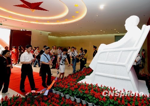 10月20日,出席毛泽东才溪乡调查纪念馆新馆开馆仪式的部分上杭籍开国将军后代向该纪念馆新馆内的毛泽东塑像献花,缅怀一代伟人。当日,福建上杭县隆重举行毛泽东才溪乡调查纪念馆新馆开馆仪式。毛泽东才溪乡调查纪念馆新馆工程于2007年8月正式开工,占地面积9350平方米,建筑面积9310平方米,总投资2000多万元。设立毛泽东《才溪乡调查》纪念馆、“九军十八师”展览馆,才溪英雄烈士馆、今日才溪馆等四个馆。中新社发 刘可耕 摄