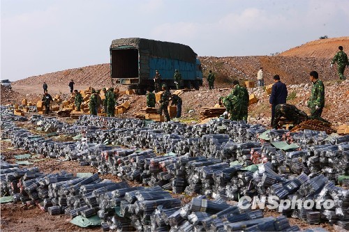 11月19日,为保障公共安全,湖南对一批货值达12余万美元的出口退运过期烟花进行销毁。中新社发 吴泰伟 摄