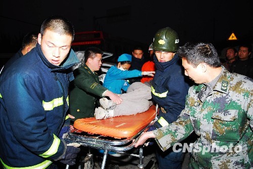 十一月二十五日下午五点二十分左右,河南省洛阳市高新区孙辛路发生一起车祸,一辆微型面包车刹车失灵撞在正在行驶的农用三轮车上,造成面包车翻车后司机被压卡在驾驶座上。洛阳高新区消防中队接到报警后立即赶往现场救助,经过消防官兵的全力抢救,司机终于获救。中新社发 向明超 摄