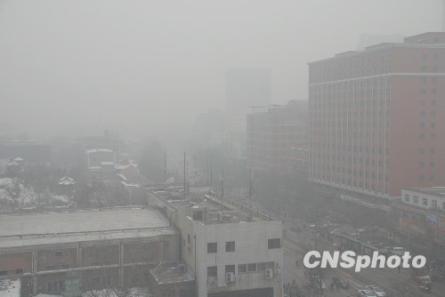 12月10日早晨,在山西太原市区街头,大雾天气导致能见度不足二百米,多辆汽车发生碰撞事故。中午时分,整个太原市依然笼罩在一片白茫茫雾气之间。当天中国北方多个地方出现大雾天气。中新社发 张雷杰 摄